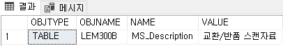 FROM ::FN_LISTEXTENDEDPROPERTY (NULL, 'SCHEMA', 'DBO', 'TABLE', '테이블명 ', DEFAULT, DEFAULT)